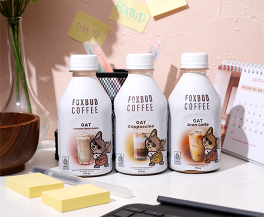 Bold Taste, Smooth Experience Pure Oat, Pure Energy, Better Coffee for Everyone “Ada ya?! Kopi pakai Oat?” Lebih ringan untuk perut, tidak mudah membuat asam lambung naik. Oat mengandung serat yang bantu pelepasan energi lebih stabil. Cocok untuk lactose intolerant karena tidak mengandung dairy. Rasa tetap creamy & nikmat dengan oat-based formula (tanpa dairy). Apa Itu Foxbud? Foxbud adalah kopi dengan oat yang: Ringan di perut Creamy tanpa dairy 100% alami Oat-based coffee yang enak, creamy, dan bisa dinikmati semua orang. Why Foxbud? • RASA MEWAH, HARGA BERSAHABAT• Cocok untuk lactose intolerance• Bold taste, but still creamy• KUALITAS PREMIUM DENGAN RASA OTENTIK Premium Oat Coffee, Lactose-Free & Crafted for Your Moments “Lactose intolerance, harga terjangkau dan tetap premium”. Proses produksi menggunakan sistem aseptic Menjaga kemurnian kualitas produk tanpa menggunakan pengawet Social Proof: Varian Produk Beli Sekarang